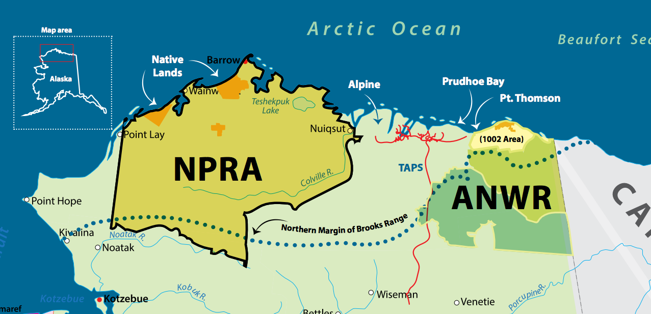 Two major resource areas offer opportunity for future energy development - the National Petroleum Reserve-Alaska (NPR-A) and Area 1002 of the Arctic National Wildlife Refuge (ANWR)